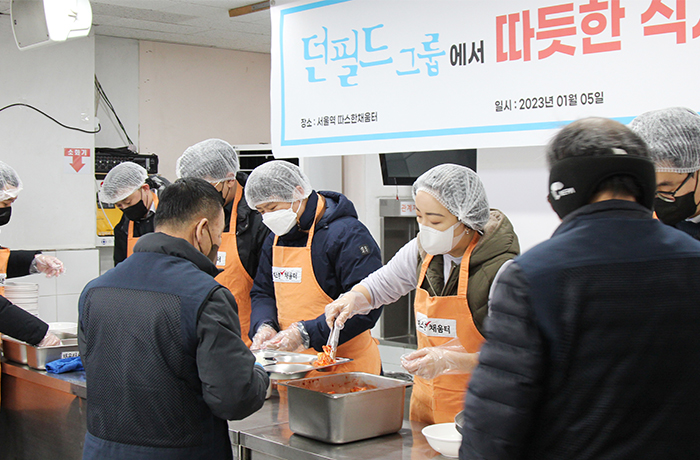 ÆÐ¼Ç±â¾÷ ´øÇʵå±×·ì(ȸÀå ¼¼øÈñ)ÀÌ Áö³ 5ÀÏ ¼¿ïƯº°½Ã¸³ ¹«·á±Þ½Ä¼Ò 'µû½ºÇÑ Ã¤¿òÅÍ'¿¡¼ ¹è½Ä ºÀ»ç Ȱµ¿À¸·Î »õÇØ ½ÃÀÛÀ» ¾Ë·È´Ù.´øÇÊµå ±×·ì¿¡ µû¸£¸é À̹ø ¹è½Ä ºÀ»ç´Â ´øÇʵå±×·ì ÀÚȸ»ç ´øÇʵåÇ÷¯½º ¼ÛÀ翬 ´ëÇ¥¸¦ ºñ·ÔÇÑ ÀÓÁ÷¿ø 10¿© ¸íÀÌ Âü¿©Çß´Ù.À̵éÀº ±Þ½Ä¼Ò¸¦ ãÀº Áö¿ª³ëÀÎ, ³ë¼÷ÀÚ, »çȸ ºó°ï Ãþ µî ¼Ò¿Ü °èÃþ¿¡°Ô ¹ä°ú ¹ÝÂù µîÀ» ¹«·á·Î ¹è½ÄÇß´Ù.